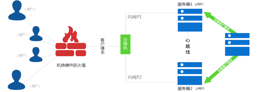 此方案主要應用于WEB、數據庫等應用服務器,服務器必須在同一機房且機器之間有心跳線連接