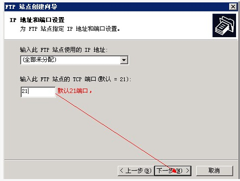 把FTP和對(duì)應(yīng)的站點(diǎn)IP關(guān)聯(lián)起來,默認(rèn)的FTP服務(wù)占用端口 21