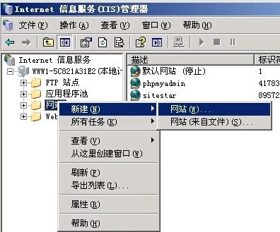 右擊-網站-新建網站(如圖所示)