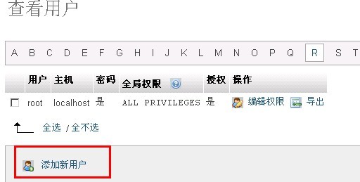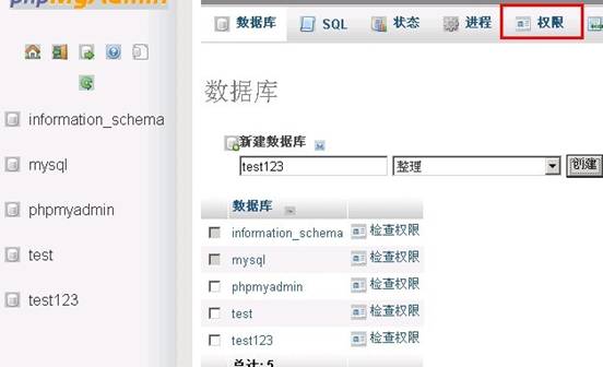 (在線數據庫管理軟件phpmyadmin) 登錄之后點擊紅色框中的權限
