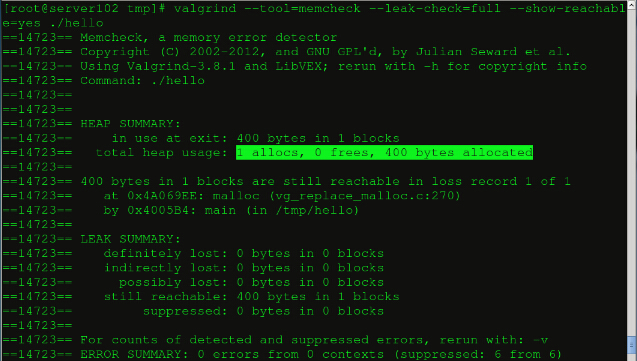 linux下檢測內存泄漏工具Valgrind簡介 在我們編寫C/C++的時候,最常見的錯誤之一就是內存泄露,這樣的問題其實跟程序員的編程習慣密不可分。如果你在虛擬主機申請內存空間之后能夠馬上在合適的位置釋放內存。會極大程度的避免內存泄漏的情況。但是人非圣賢,孰能無過。有時候我們確實忘記釋放內存而導致了比較嚴重的錯誤,所以這個時候我們需要借助valgrind這個工具來判斷內存泄漏。 Valgrind 是一款 Linux下(支持 x86、x86_64和ppc32)程序的內存調試工具,它可以對編譯后的二進制程序進行內存使用監測(C語言中的malloc和free,以及C++中的new和delete),找出內存泄漏問題。 Valgrind 中包含的 Memcheck 工具可以檢查以下的程序錯誤: 使用未初始化的內存 (Use of uninitialised memory) 使用已經釋放了的內存 (Reading/writing memory after it has been free’d) 使用超過malloc分配的內存空間(Reading/writing off the end of malloc’d blocks) 對堆棧的非法訪問 (Reading/writing inappropriate areas on the stack) 申請的空間是否有釋放 (Memory leaks – where pointers to malloc’d blocks are lost forever) malloc/free/new/delete申請和釋放內存的匹配(Mismatched use of malloc/new/new [] vs free/delete/delete []) src和dst的重疊(Overlapping src and dst pointers in memcpy() and related functions) 重復free valgrind的使用實例: 在官網上找到valgrind的tar包,解壓,編譯。完成后make安裝: