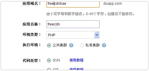 4、然后設置好應用域名和應用名稱、PHP環境等。