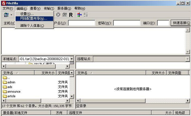 近日朋友在億恩科技購買了新的虛擬主機空間,需要把一個wordpress建的網站整站遷移到另一個空間上,我很爽快的答應了。原本應該是很簡單的事情,無奈卻處處碰壁,遇到各種問題。終于在今天把所有問題解決,寫下這篇文章希望能夠幫助更多出現這樣問題的朋友。 任務:把用所在A服務器的A1域名下的wordpress所建的網站遷移到B服務器下B1域名下。 環境:普通家用2M寬帶(多人使用有路由),B服務器無任何控制面板,僅有ftp和mysql帳號密碼。新服務器為unix操作系統,支持php,mysql版本為5.0.1 思路非常清晰,但是卻遇到非常多的問題。把A服務器下的全站做個壓縮包,傳到B服務器上進行解壓。A服務器上的數據庫用phpmyadmin導出,然后同樣用phpmyadmin導入到B服務器的數據庫。 第一個問題就是空間不支持解壓縮。我用faisun_unzip.php 小程序解壓壓縮包的時候,提示是沒有zlib庫,也就是不支持。比較郁悶。既然不支持解壓縮,又沒有控制面板,那么那些文件只有一個一個的上傳了。 于是解開壓縮包,開始上傳文件,無奈傳幾個文件以后就開始超時或者假死。很郁悶,wordpress本身自身的文件就有幾千,再加上網站運行一段時間后生成的一些文件,如果總是這樣超時斷開連接,根本無法正常傳輸。換了幾個ftp軟件都沒有解決問題。 后來換到一款叫做FileZilla的ftp軟件,利用軟件自帶的網絡配置向導功能檢測了一下網絡,說我的網絡有問題。于是想到了,一定是路由器的問題,端口的問題。結果按照這個思路,果然解決了問題。下面說一下具體的步驟。 首先大家要下載這個ftp客戶端軟件,FileZilla,大家在網上搜索即可。 1、啟動軟件后,點擊編輯,運行網絡配置向導 點擊next ![]() 2、這里防火墻和路由器配置向導默認即可,點擊next