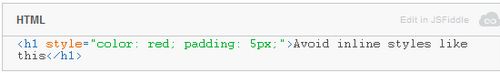人們經常將設計風格放入線上的HTML里,但是這樣會把語義標記和風格搞混淆。分離關注點的同時還消除了緩存和重復使用CSS的機會。DRY原理在這里比較適用:如果你想把一個風格使用在多個點上,那就需要事先聲明這個風格是在一個單獨的樣式表里的。