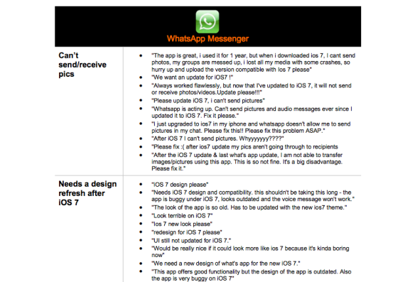 Applause檢索了88萬個iOS應用,其中5500個應用的評論中提到了iOS7。所有iOS應用評論的平均星級是3.56。而凡是涉及到iOS7的iOS應用評論的平均星級是2.81。這意味著iOS7應用的水平要低于評級的平均分。