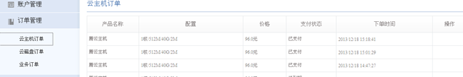 用戶管理和訂單管理沒有什么好介紹的了,什么,你不知道?好吧。我就插幾句,用戶管理功能包括賬戶信息、資料修改和修改密碼,訂單管理里面云主機訂單、云磁盤訂單、業務訂單等,這些功能主要可以修改的個人信息以及查看自己所有產品的購買詳情,知情權是一個消費者最基本的權利。