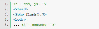 用戶端發(fā)送瀏覽請求后,服務(wù)器端一般要花銷200-500ms去處理這些請求,在此期間,用戶端瀏覽器處于等待狀態(tài),如果要減少用戶等待時間,可以在適當?shù)奈恢檬褂胒lush,將已經(jīng)就緒的內(nèi)容推送到用戶端,這在php中很容易實現(xiàn)例如: