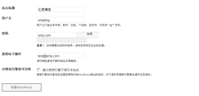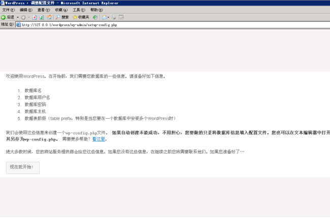 3、開始配置phpstudy。在瀏覽器中輸入http://127.0.0.1/wordpress,按照提示填寫相關信息。