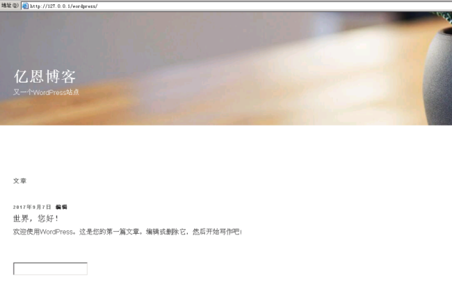 4,在瀏覽器中輸入http://127.0.0.1/wordpress,顯示出網站頁面。至此wordpress就安裝成功了。