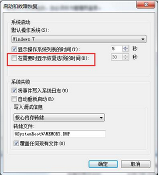 第四步:在設置頁面,只需要勾選在需要時顯示恢復選項的時間就可以了,最后點擊確定。
