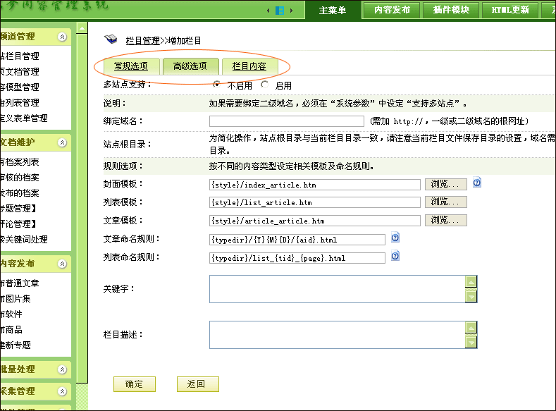 3、欄目交叉:欄目交叉是指一個大欄目與另一個非下級的子欄目出現(xiàn)交叉的情況,相當(dāng)于系統(tǒng)原來的副欄目功能,不過現(xiàn)在改在欄目里預(yù)先設(shè)置好。