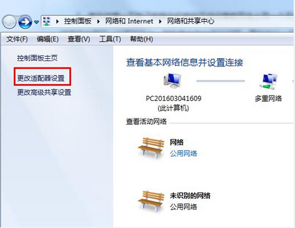 2、然后選擇打開“更改適配器設置”。如下圖:
