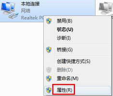 3、接著右鍵點擊“本地連接”,選擇“屬性”。如下圖: