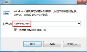 5、使用快捷鍵win+R,直接打開運行,并輸入“services.msc”,點擊確定。如下圖: