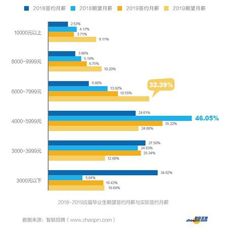 今年的畢業生期待薪資為六千到八千這個幅度,但是理想與現實總是存在差距的,調研指出,從實際簽約月薪看,有七成2019應屆畢業生的簽約月薪在6000元以內,4000元以下占比為35.77%,相比2018年六成應屆畢業生簽約月薪不足4000元,而三千元以下的占比為34.62%。