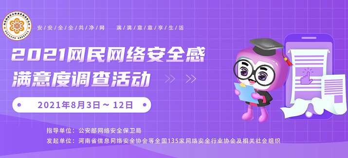 為全面了解、反映網民對我國網絡安全狀況的感受和看法,向國家和有關部門開展互聯網治理與監管提供詳實的網情民意的支撐,2021網民網絡安全感滿意度調查活動于8月3—12日正式上線采集樣本。