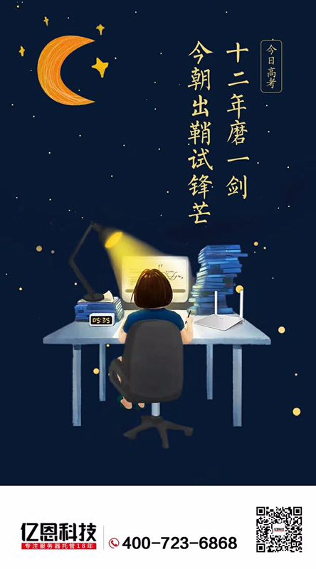 今天是6.7號,又到了一年一度的高考時間。高考是無數學子寒窗苦讀十二年奮斗的目標,是無數貧困學生改變命運的一搏,也是為自己這么多的年的努力交一份答卷。高考之后,你將告別自己的青蔥歲月,踏入人生的另一條道路,這條道路是坎坷還是平坦大道,決定權就在此一役。億恩科技的小編在此為大家助力,希望大家都考到好的成績,踏入自己理想的校園。
