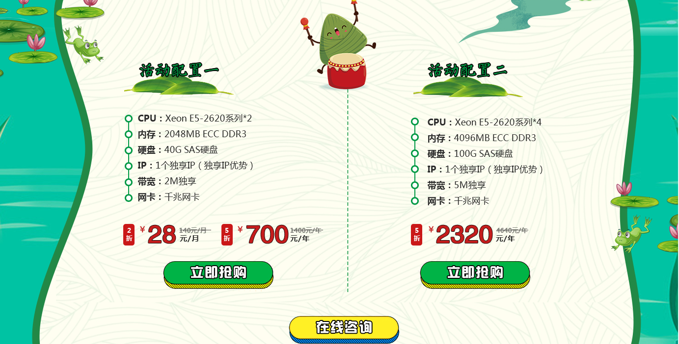 時(shí)值收種的季節(jié),又臨近我國(guó)的傳統(tǒng)節(jié)日--端午節(jié),值此佳節(jié),億恩科技為了回饋廣大新老客戶對(duì)本公司的長(zhǎng)期支持,特推出端午節(jié)云主機(jī)鉅惠活動(dòng)。活動(dòng)期間凡是前來選購(gòu)億恩云主機(jī)的新老客戶,均能享受活動(dòng)價(jià)。